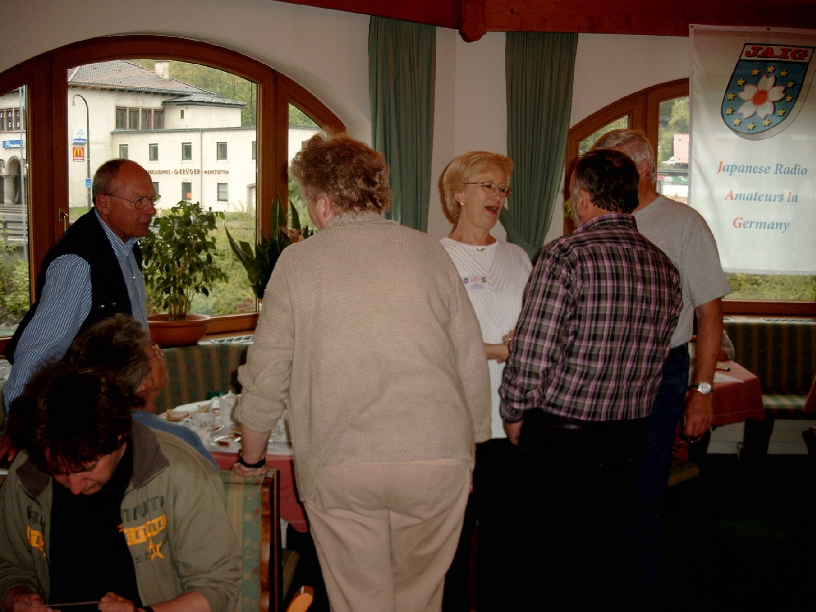 Um 13 Uhr trafen sich die bereits angereisten JAIG-Mitglieder vor dem Hoteleingang. Unter den JAIG-Mitgliedern befanden sich sehr viele japanische Funkfreunde, die teilweise schon Tage vorher aus Japan angereist waren, um die schoene Landschaft um Berchtesgaden zu geniessen.