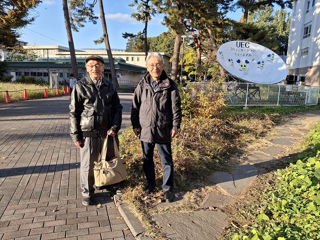 Wir trafen uns am Bahnhof Tokyo Chofu und erreichten zu Fuss den Eingang des UEC in etwa 10 Minuten. Das Museum befand sich et­was weiter hinten im Gebaeude Nr.10. Nach­dem wir uns ins Gaestebuch eingetragen hatten, betraten wir den ersten Ausstellungsraum und waren beeindruckt von den Loesch­funksendern und Radarpeilern, die offenbar bis vor Kurzem noch in Betrieb waren.