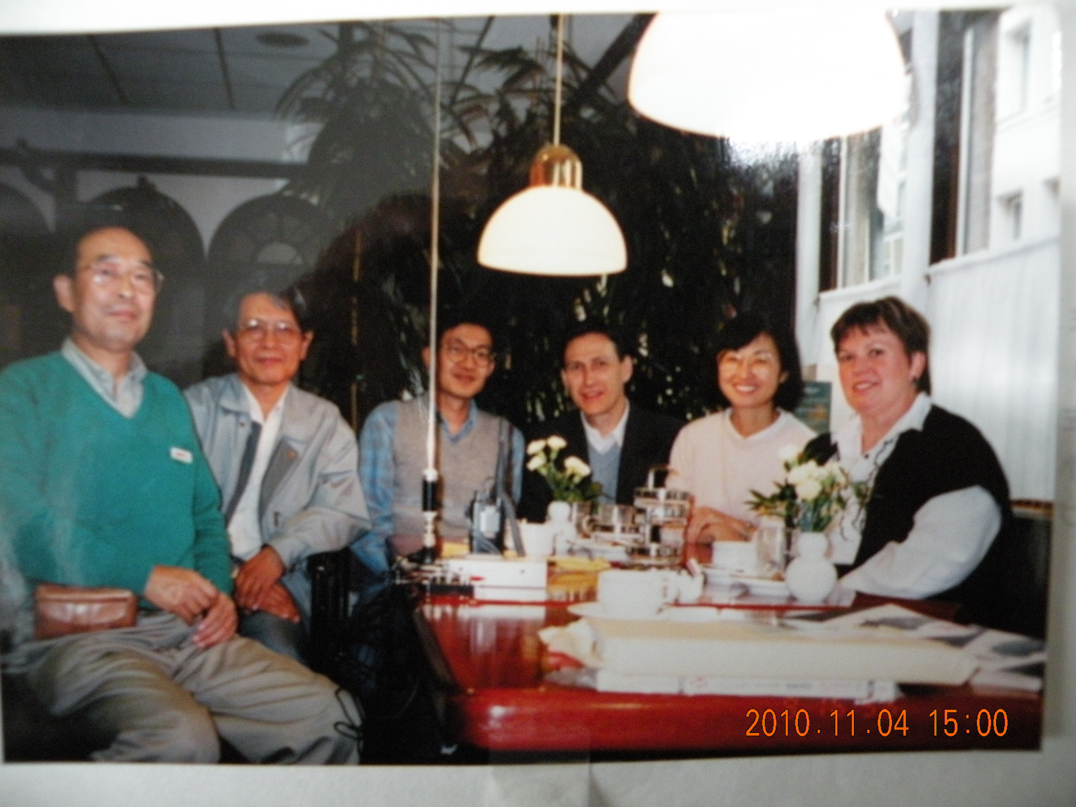 Seitdem hatte ich den Wunsch Deutschland zu besuchen und ueberlegte, auf welche Weise ich dorthin reisen kann. Es gab eine Gelegenheit, das war 1996, als ich ein Reiseangebot sah, habe sofort gebucht. Damals hatte ich keinen besonderen Bekannten­kreis ausser der Funkverbindung. Vor Reiseantritt habe ich bereits eine Gastlizenz erwor­ben. Ueber dieses Thema habe ich mit meinem Funkfreund, Herrn Li in Seoul (HL1CO) per Funk auf 14 MHz gesprochen. Dieses Gespraech hatte Senda-san JA1MYW gehoert. Senda-san hat dann Noda-sans Telefonnumer von Li-san gehoert und mich angerufen und mir Iki-san vorgestellt. Senda-san hatte arrangiert, dass ich, wenn ich in Muenchen ankomme, im Hotel eye-ball QSO machen kann. Es war der 15. September 1996, gegen Mittag. Als ich im Hotel ankam, warteten bereits Iki-san, DF2CW, Tsurumi-san, DJ0OQ, Butz-san, DJ9WH und Mieko-san, DJ7KJ und Erika san. So habe ich mich in Europa das erste Mal mit Funkfreunden getroffen, koennen sie sich diese grosse Freude vorstellen? Seitdem bin ich JAIG-Mitglied.