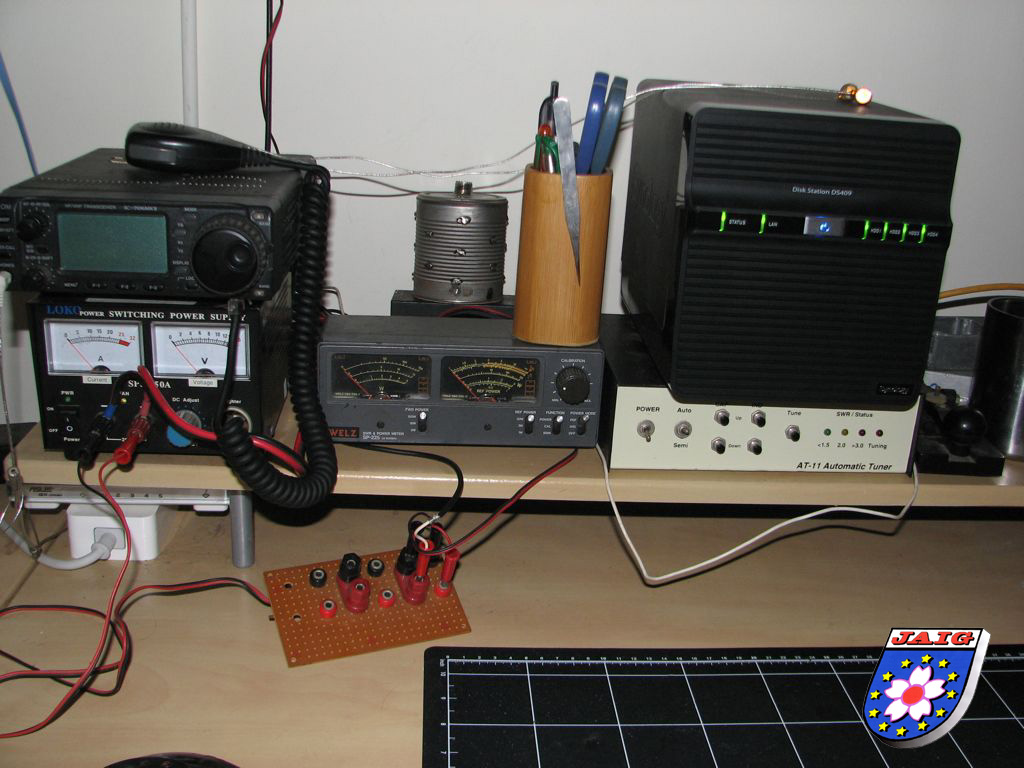 Stattdessen habe ich mir inzwischen eine einfache Antenne fuer 21MHz gebastelt und hatte sogar schon QSOs mit JR0DLU und JA1DKN – mit dem aber nur kurz, weil Taifun Fanapi genau bei meinem dritten Durchgang den Strahler gekappt hat.