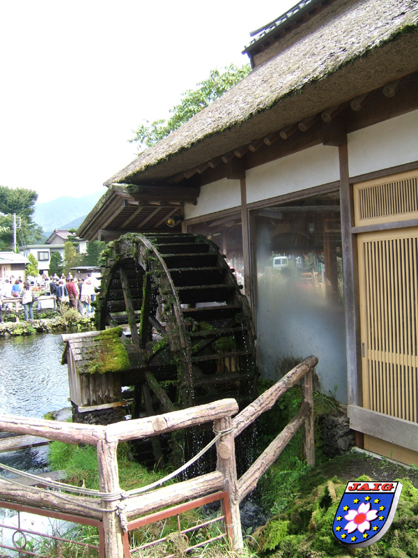 Es gibt u.a. ein „wakimizu“, das ist eine runde mit Wasser gefuellte Oeffnung. Beim Hineinsehen kann man es sich nicht vorstellen, dass sie 10 m tief ist. Die hineingeworfenen silber­leuchtenden Muenzen sind klar zu erkennen und dennoch vermittelt der Blick nach unten einen mystischen Eindruck. Die darin schwimmenden Fische mit blauer Haut verstaerken diesen Eindruck. Die umliegenden kleinen Haeuser und Muehlen sind Bestandteil eines kleinen Freilichtmuseums.