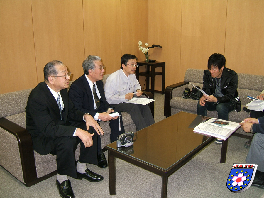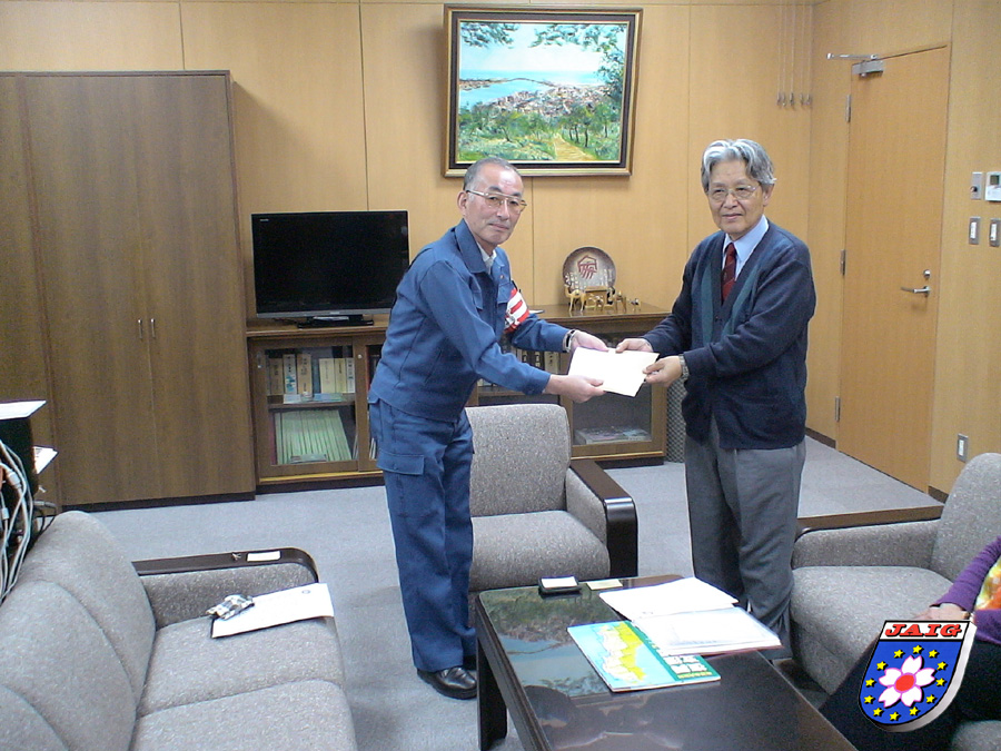 Wir wurden vom Vizebuergermeister der Stadt, Kitamura-san empfangen. Kuni erzaehlte kurz die Hintergruende unserer Idee und uebergab anschliessend den Umschlag mit der Spendensumme. Sie wurde mit grosser Dankbarkeit entgegengenommen.
