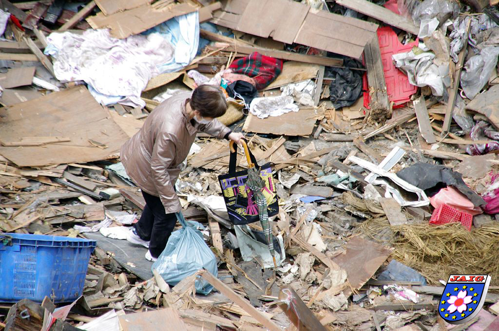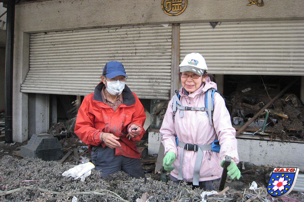 Mein Freund Isosaki-san, JH7IUE mit seiner Frau Yoko-san, JR7RXU, ist nach dem Erdbeben unbewusst mit dem Auto in eine falsche Strasse eingebogen, das hat auch ihnen das Leben gerettet, sein Haus und Kimono-Geschaeft sind total zerstoert.