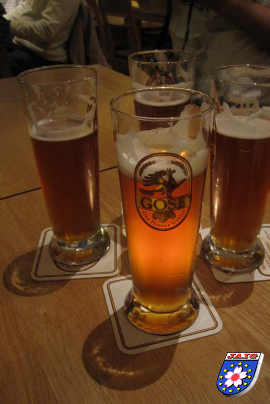 Nach der "Erholungsphase" ging es an den beiden Dicken vorbei durch die Altstadt in Richtung "Brauhaus Goslar". Dort hatten Gerda, DL5OBK und Joachim, DJ7TA bereits einen huebschen Raum fuer uns ausgesucht und reserviert. Wir wurden mit einer kurzen Rede herzlich begruesst und dann stand einem vergnueglichen Abend nichts mehr im Wege.