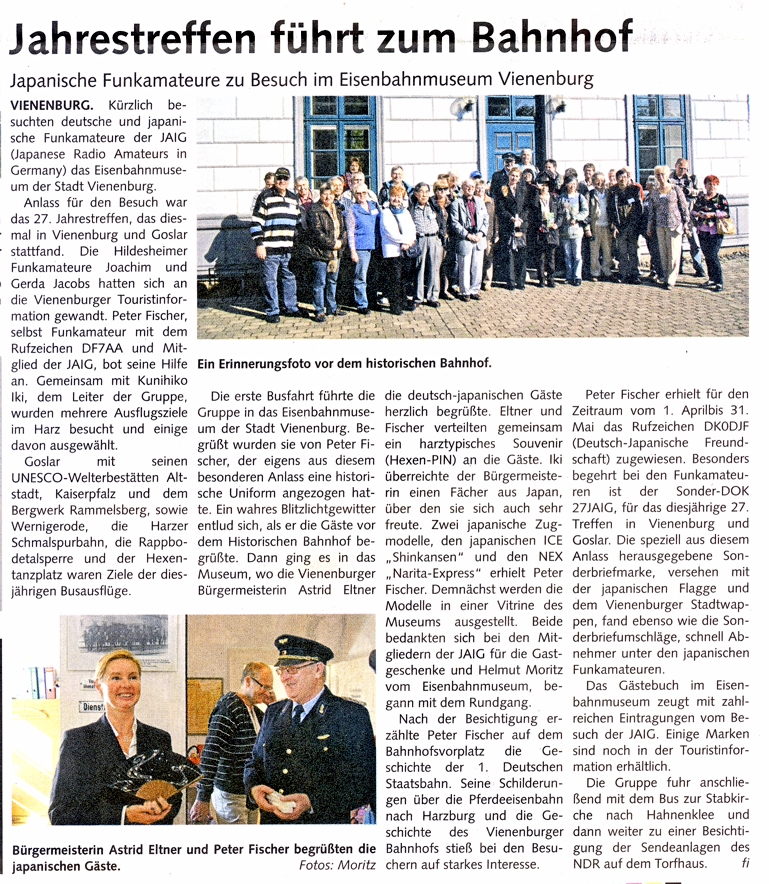 Nach der Rueckkehr aus Japan hatten wir "alle Haende voll zu tun", die Berichte fuer die Spenderinnen und Spender, die News Nr. 103 und dann kam auch schon der naechste wichtige Termin, naemlich die HAM Radio.