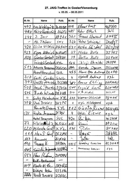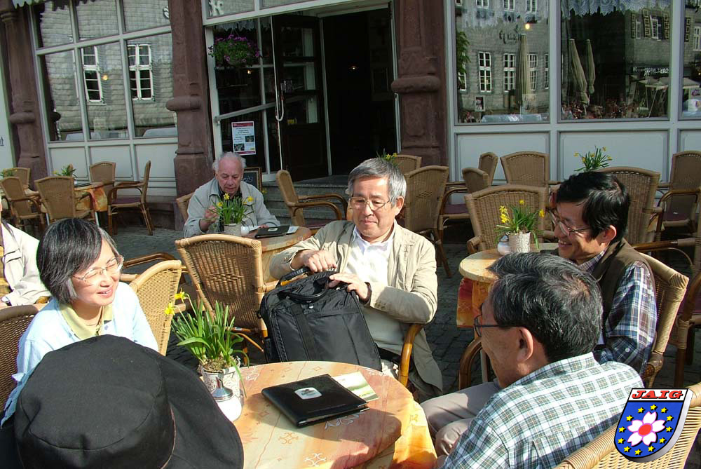 Fuer YL Ogawa-san, JN2WHR, war es das erste JAIG-Treffen in Europa. Unser "erfahrener" Freund Ohnishi-san, JA3PE, stand ihr dabei sehr hilfreich zur Seite und fuer Miyamoto-san, JE3BEQ, war es schon "Routine".