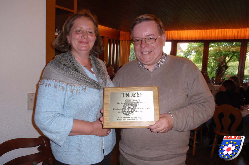 Kuni konnte an diesem Abend OM Walter Schlink, DL3OAP (ehemaliger Vorsitzender des DARC) mit seiner XYL Marianne begruessen, die unserer Einladung gefolgt waren. In seiner herzlichen Rede dankte er fuer die Einladung und erzaehlte, dass er bislang die Gruppe "JAIG" nicht kannte und sich vor seinem Besuch via Internet informierte. Er hat an diesem Abend die JAIG-Familie kennengelernt und ist inzwischen unser Mitglied mit der Nummer 555, worueber wir uns natuerlich sehr freuen. Er sagte, dass er in Zukunft, wenn es sein Terminkalender erlaubt, gerne an unseren Treffen teilnehmen wird.