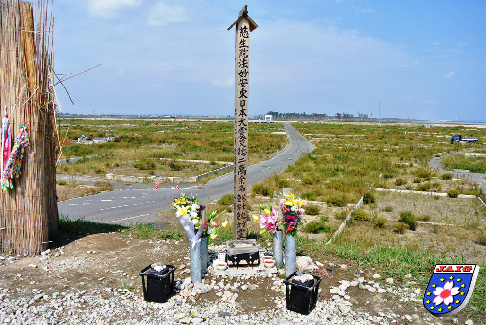Am Sonntag, 07.10. machte Kuni’s Bruder den Vorschlag, in die Naehe des Sendaier Flughafens zu fahren, dort hatte der Tsunami ebenfalls gewuetet. Wir waren einverstanden und so ging es an vielen brachliegenden Grundstuecken vorbei. In den Vier- und Rechtecken, wo Haeuser standen und kleine Gaerten, wachsen Buesche, Gras und auch ein paar Blumen.