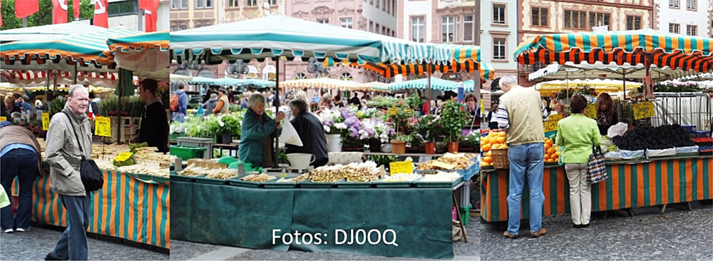 Unmittelbar daneben schlenderten wir ueber den Mainzer Wochenmarkt mit vielen Anbietern, der stark besucht war. Auch hier gab es viele frische Lebensmittel und