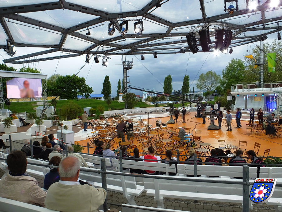 Auch zum Lerchenberg brachte uns der Busfahrer ins ZDF-Gelaende gegen 14:00 Uhr. Interessengerecht gab es Technik mit professioneller Fuehrung. Man konnte den neuesten UE-Wagen aber auch die Studios besichtigen und Einblick erhalten wie vor den Aussendungen TV-Ablaeufe geprobt werden. Die Sendung „Fernsehgarten“ war mit grossem Interesse aufgenommen worden. Hier durften auch in den Aussenanlagen Fotos gemacht werden.