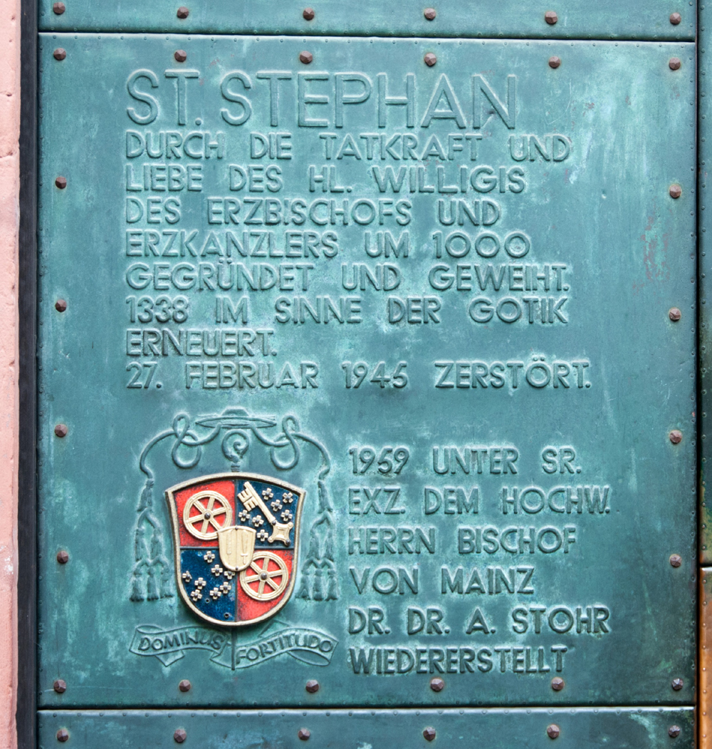 In der Stephanskirche haben wir dann einige Gemaelde und die Chagallfenster fotografieren koennen. Der befreundete Busfahrer brachte uns direkt zur Stephanskirche. Vor der Stephanskirche wurden wir zeitgenau zu einem Sightseeing der interessanten Mainzer Innenstadt abgeholt.