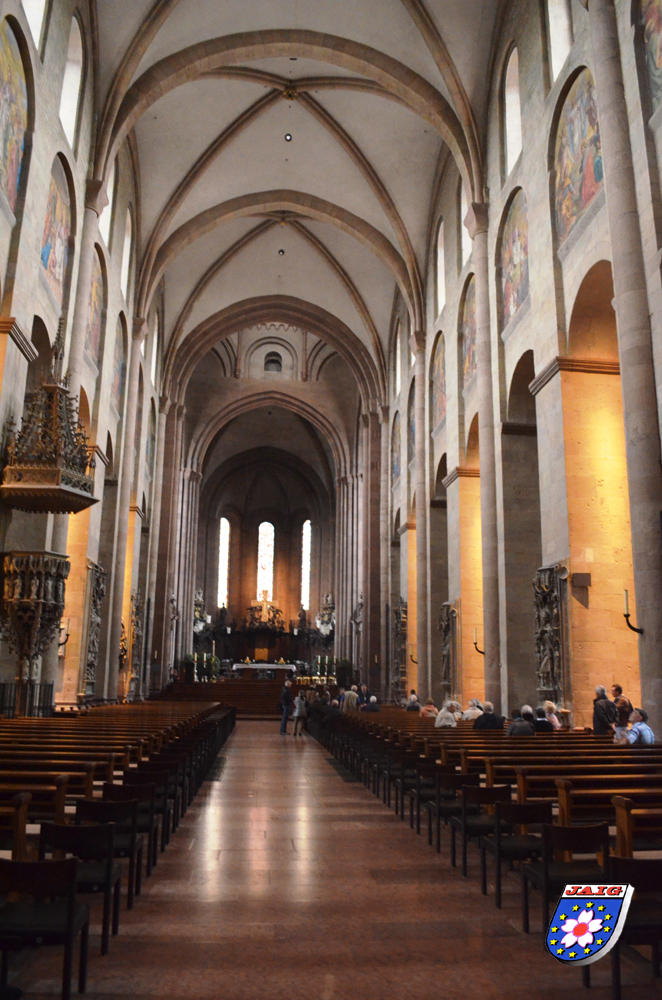 Urspruenglich wurde der Dom nicht aus seelsorgerischen Gruenden erbaut, sondern diente als Gebaeude, in dem der Mainzer Bischof den Kaiser empfangen konnte. Im Mittelalter war der Mainzer Bischof ein wichtiger Mann in Kirche und Staat, er hatte den Vorsitz ueber 7 Kurfuersten, die in Frankfurt den Kaiser waehlten.