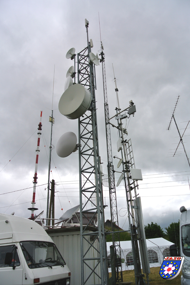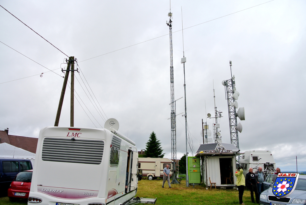 Wir fuhren also das Stueck weiter hinauf und sahen ein Hinweisschild mit der Aufschrift Funkamateurclub A 48 (OV Pfullendorf) und „jede Mengen Antennen“. Eine kurze Erklaerung warum wir hier heraufgefahren sind und die anschliessende Bitte, ob wir unser Auto auch hier abstellen koennen, wurde mit „ja, schaut mal, wo ihr einen Platz findet“, beantwortet. Es gab einen Antennentower mit einigen Parabolspiegeln und Yagi-Antennen,