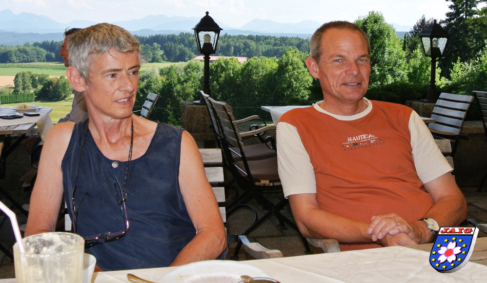 Wir waren am zweiten Wochenende im August in Garmisch und dachten schon, mit dem Besuch haette es nicht geklappt. Da klingelte am Sonntagmorgen, 11.08. das Telefon und Jochen war dran. Am Samstag wurde die "klassische Route" abgefahren und besichtigt. So ist abends spaeter geworden als geplant und er wollte uns nicht mehr stoeren. Ob wir uns denn noch wiedersehen koennen? Natuerlich wollten wir und so fuhren wir zum Hotel, um uns mit Jochen und seiner XYL Anne zu treffen und dabei seine Freunde kennenzulernen.