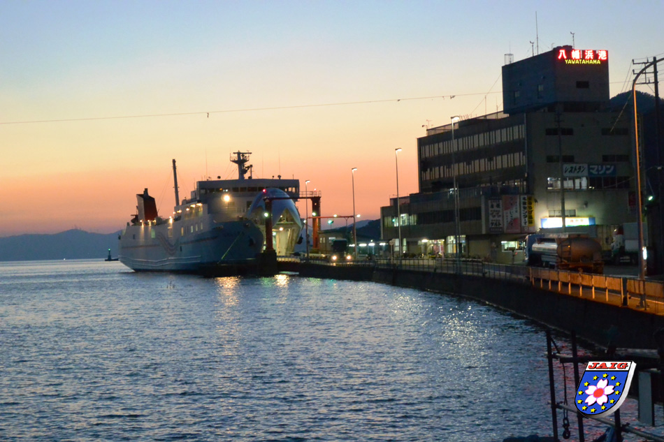 Am Dienstag hatten wir dann eine etwas laengere Bahnreise vor uns, denn wir wollten nach Yawatahama auf Shikoku. Zuerst ging es mit Shinkansen "Hikari" von Kyoto bis Okayama. Dann mit dem auf Schmalspur fahrenden "Shiokaze" bis Matsuyama und von dort dann mit dem "Uwakai", einem dieselbetriebenen Zug bis Yawatahama. Der Unterschied zwischen den normalspurigen Shinkansen und den schmalspurigen Strecken ist nicht nur spuerbar sondern auch zu hoeren. Am lustigsten fanden wir die Fahrt auf der dieselbetriebenen Strecke. Puenktlichst kamen wir am anderen Ende von Shikoku an und fuhren dann in unser neu gebautes Hotel. Die Zimmer waren sehr klein und wir waren froh, dass unsere Koffer bereits mit Takkyubin unterwegs waren, sie haetten naemlich wirklich keinen Platz gehabt. Mit drei Schlafmoeglichkeiten hatten wir nicht gerechnet, denn ueber unserem etwas schmaleren Doppelbett war noch ein Einzelbett montiert. Wir fuehlten uns wie in einer Berghuette, beim Aufstehen mussten wir auf unsere Koepfe achten.