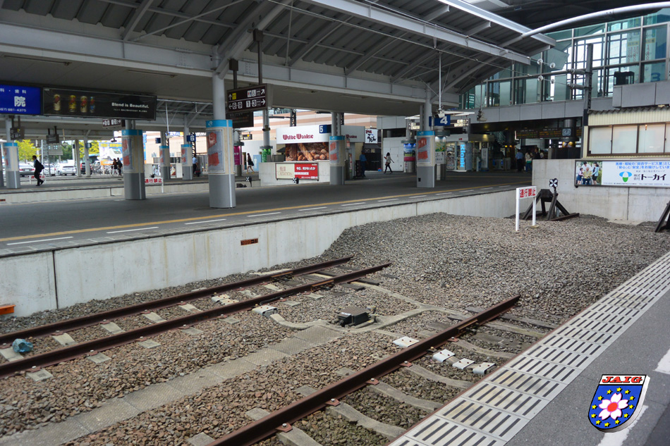 Tags darauf hiess es, wieder zurueck bis Sakaida und in eine andere Richtung weiter. Wir wollten nach Tokushima und so fuhren wir ueber Takamatsu - mit einem "Kopfbahnhof", den wir zum ersten Mal auf unseren Bahnreisen in Japan sahen - zu unserem Ziel. Wiederum ganz puenktlich kamen wir an und fuhren zu unserem Hotel. Vor dem Abendessen machten wir noch einen Rundgang.
