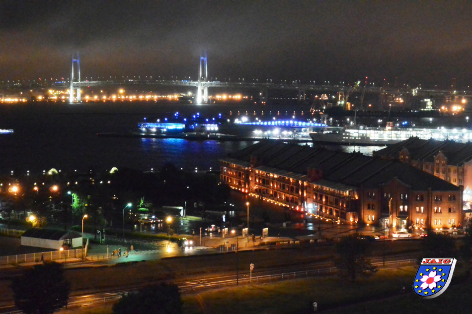 Von unserem Hotelfenster aus sahen wir anschliessend einen Teil des Hafens Yokohama im naechtlichen Lichterglanz und fielen dann muede in unsere Betten.