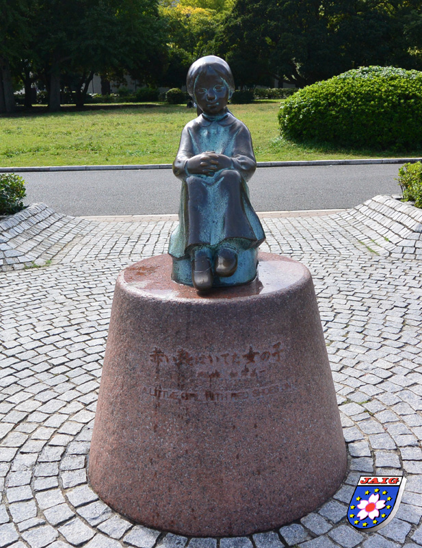 Ich legte eine Pause ein und setzte mich auf eine Bank, in Gesellschaft von "japanischen Spatzen" und genoss die waermenden Sonnenstrahlen. Kuni ging noch bis zum "Maedchen mit den roten Schuhen"; das in dem japanischen Kinderlied "akai-kutsu haiteita onna no ko ...." besungen wird.