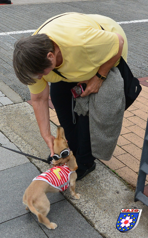 Was uns auffiel, einige Hunde waren bei der Waerme bekleidet und sogar mit Sonnenbrille unterwegs!Als wir wieder zum Hotel zurueck gingen, traute ich meinen Ohren nicht, die bayerische Blaskapelle im Bierzelt spielte den Donauwalzer!! Das Zelt und die Freiflaechen waren voll besetzt und es gab richtiges Oktoberfestessen, wie wir beim Vorbeigehen feststellen konnten - aber auch sushi. Wir gingen ins "rote Haus" zum Mittagessen, dort gab es im Gegensatz zum Zelt genuegend Platz.