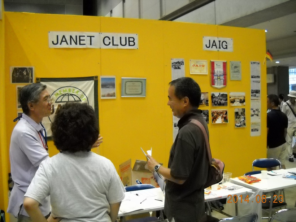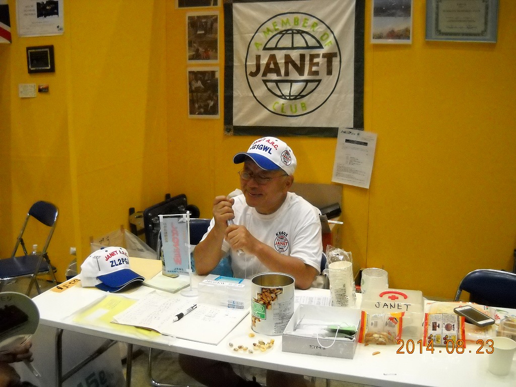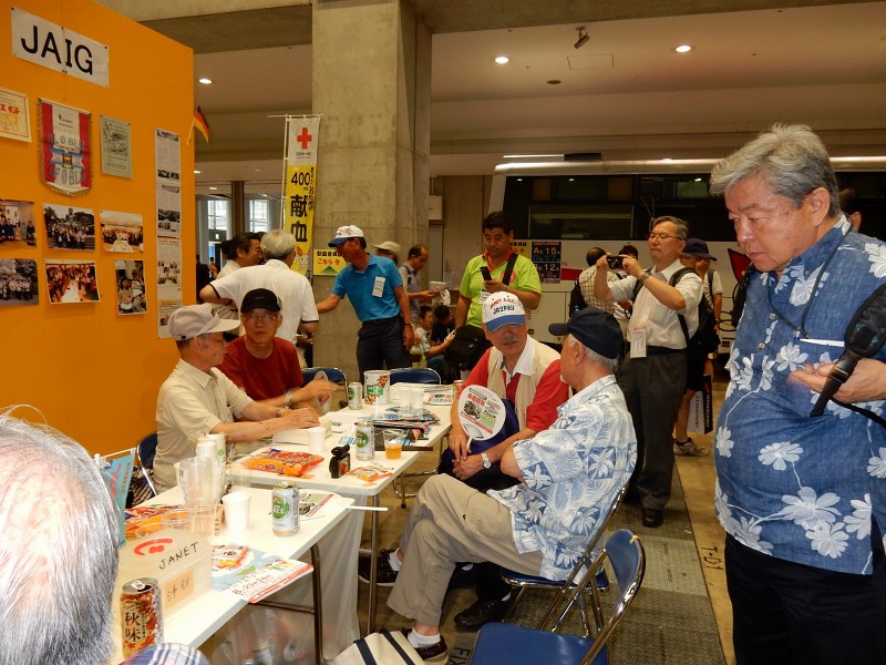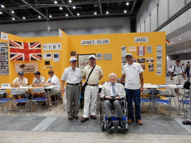 Kurz vor Schluss kam OM Hara (JA1AN #025, ehem. Praesident von JARL) mit Rollstuhl zu unserem Stand. Der Begleiter von OM Hara, der seinen Rollstuhl geschoben hat, war ein Mitarbeiter von JARD (The Japan Amateur Radio Development Association) und er fragte, was bedeutet JAIG oder JANET? Ueber diese Frage war ich entsetzt. Als JARD Angestellter sollte er es schon wissen - oder ist es unsere noch mangelnde PR?