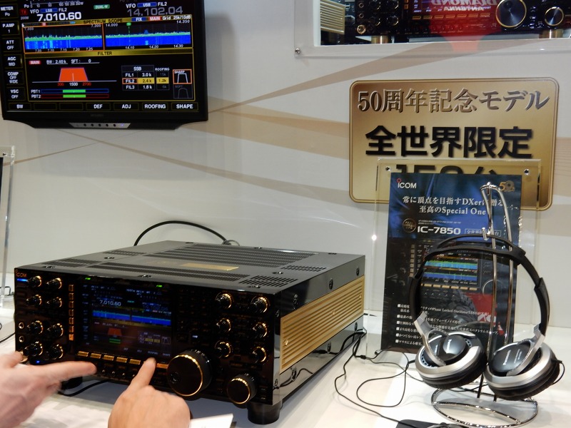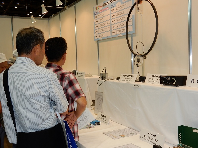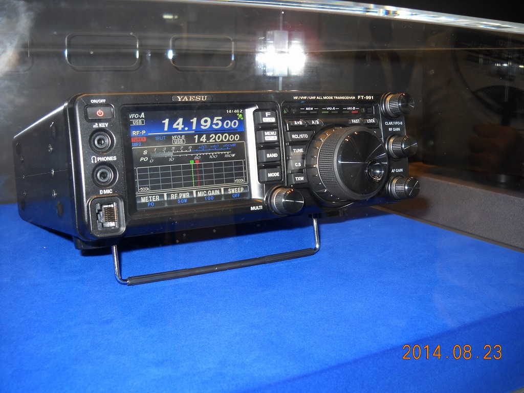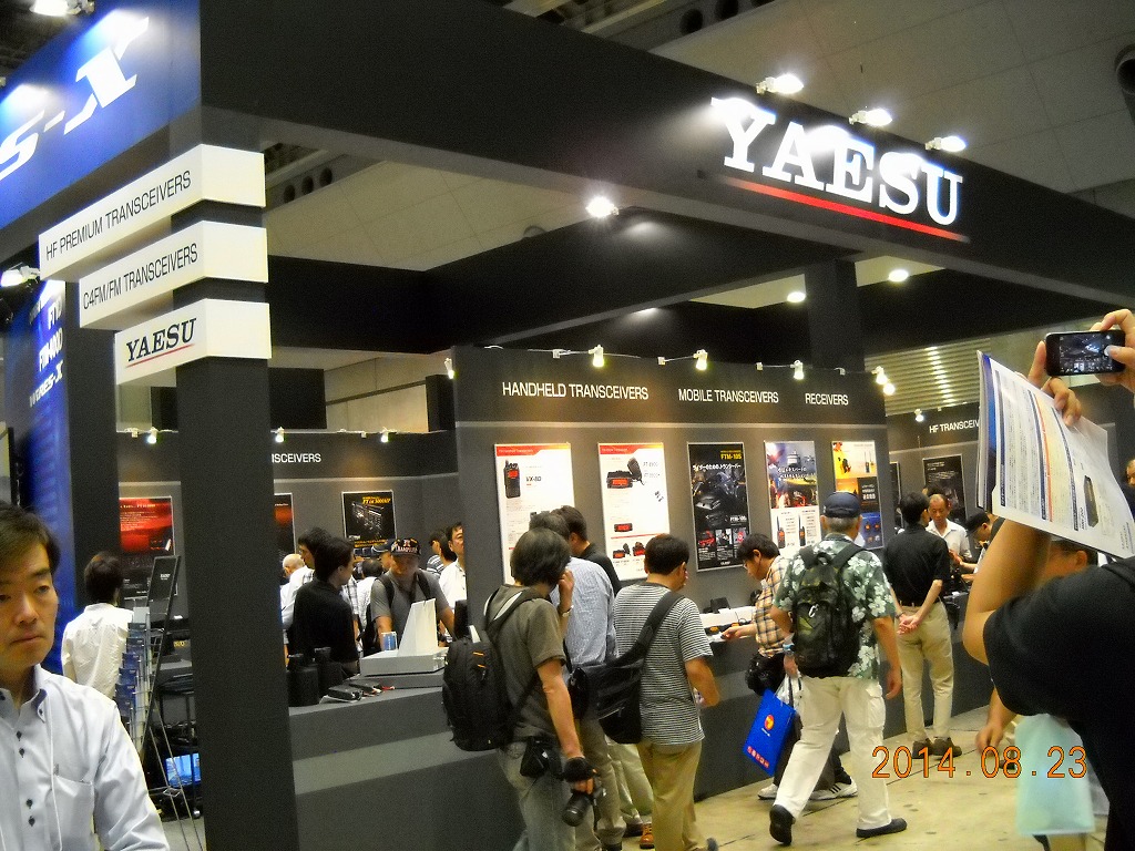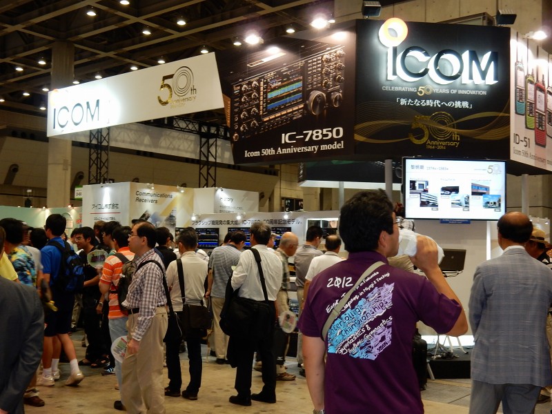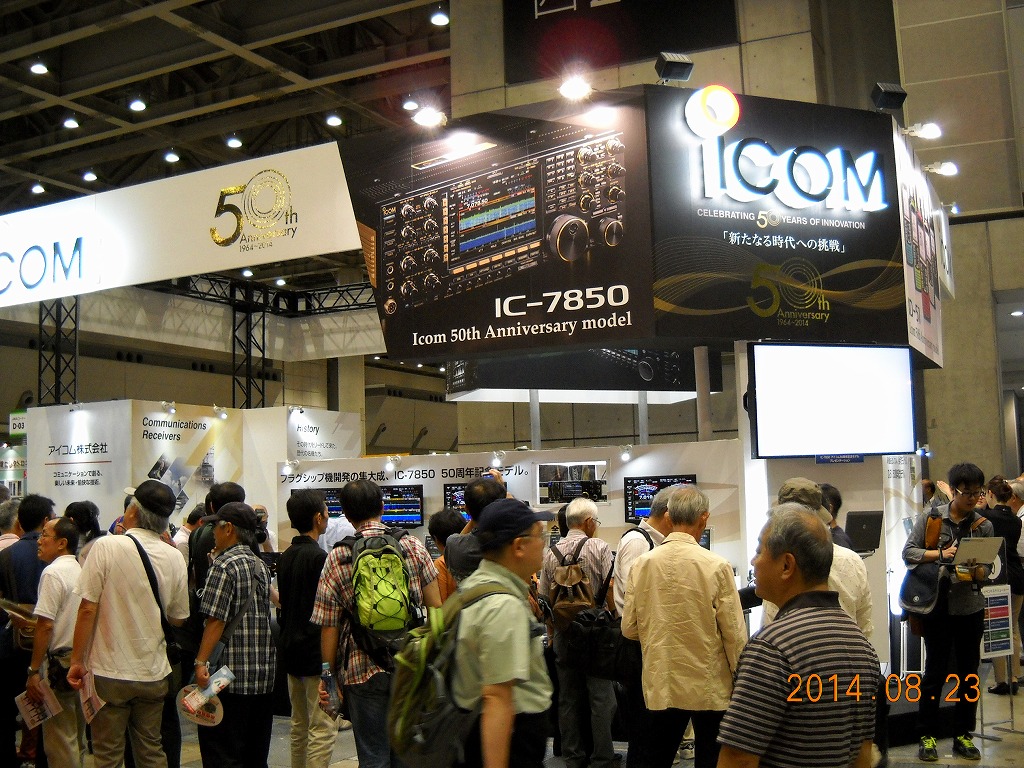 Bei den Ausstellungsstaenden von Funkgeraeteherstellern waren viele Leute, weil die Fa. ICOM ein Sondermodell zum 50. Gruendungsjahr eine limitierte Stueckzahl von IC-7800 als IC-7850 angeboten hat und Fa. YAESU hat ein Studie-Produkt FT-991 vorgestellt. Es gab ja noch mehr bekannte Firmen, z.B. Fa. Alinco, Fa. Comet usw., jedoch wegen Zeitmangel konnte ich sie nicht in Ruhe besichtigen.