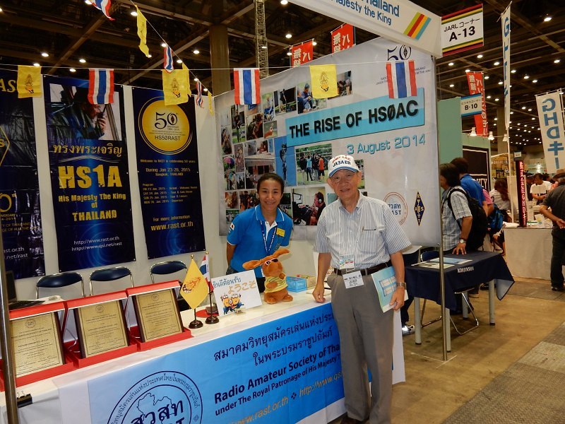 Neben dem DXCC Checkpoint von ARRL gab es einige auslaendische Staende. Der DARC hatte einen gemeinsamen Stand mit RL (Luxemburg) und ASTRA (Tunesien). Ein anderer auslaendischer Stand war aus RAST-Thailand. Den RAST-Stand schmueckte ein Foto von Koenig Bhumibol Adulyadej. Diese Staende gab es innerhalb vom JARL Bereich. Wenn JARL auch fuer RSGB (England) einen solchen Stand anbieten sollte, koennte man dort einen IOTA-Checkpoint einrichten und damit den Personal Einsatz reduzieren.