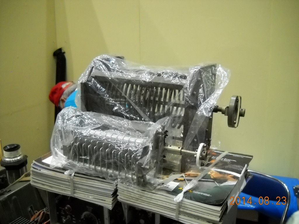 Ein Hochspannungs-Drehkondensator 5000 yen, eine veraenderbare Spule 10.000 yen, so hat das ein Stand angeboten. Ein unbekannter OM kam zu mir und sagte, dieser Drehkondensator kann sicher eine hohe Sendeleistung z.B. 10kW aushalten. Wenn man ihn fuer ein Anpassgeraet verwenden sollte, benoetigt man einen zweiten Kondensator. Offensichtlich war unsere Diskussion zu lang.