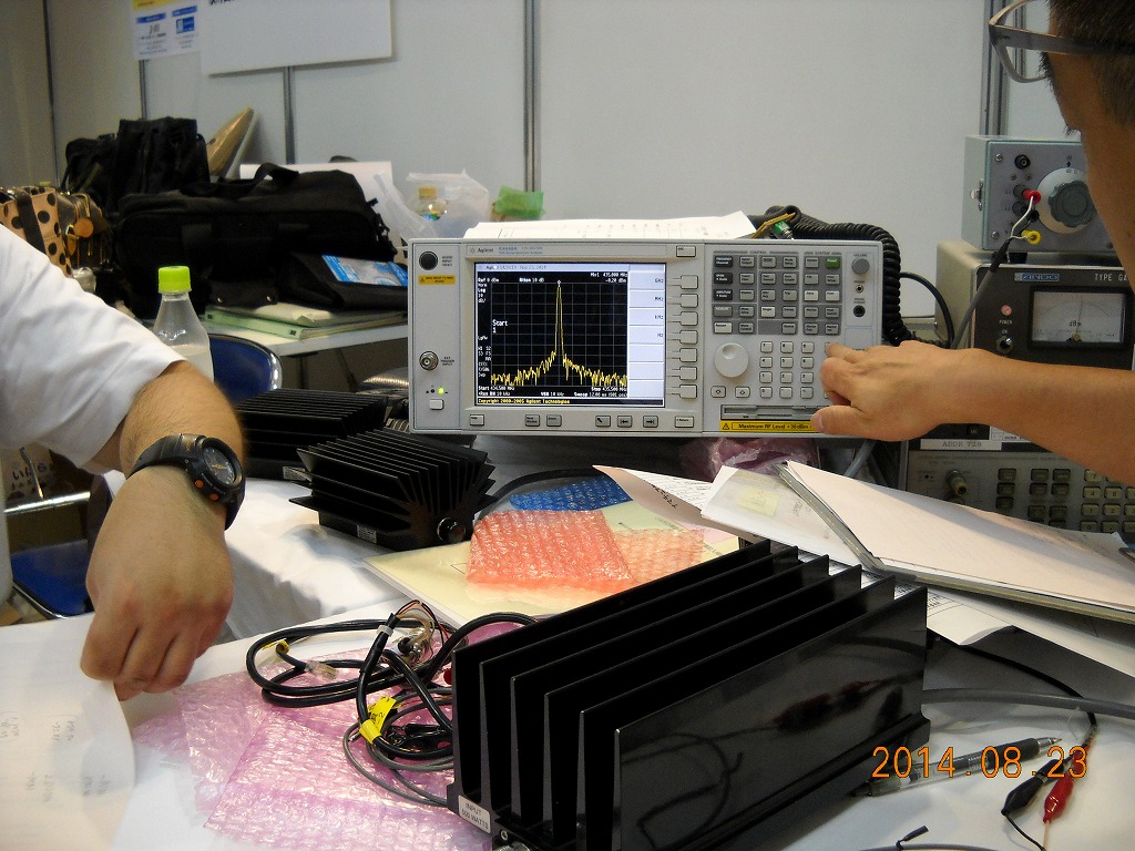 Am JARD-Stand (The Japan Amateur Radio Development Association) konnte man kostenlos die Funkgeraete ueberpruefen lassen. Ich habe mich sofort entschlossen, mein Handy (VX-2 von Yaesu) zu testen. Ich habe gedacht, dass einige Eigenschaften schlecht geworden sein koennten, weil das Garaet seit 9 Jahren in Gebrauch ist. Das Ergebnis hatte mich ueberrascht, weil die Frequenzabweichung nur -500 Hz beim 435 MHz-Band und die Nebenausstrahlung -66 dB hatte. Es waren unglaubliche Werte. Die Stabilitaet von modernen Geraeten ist verblueffend. Ich denke, dieses Geraet kann ich noch 10 Jahre ohne Bedenken benutzen.
