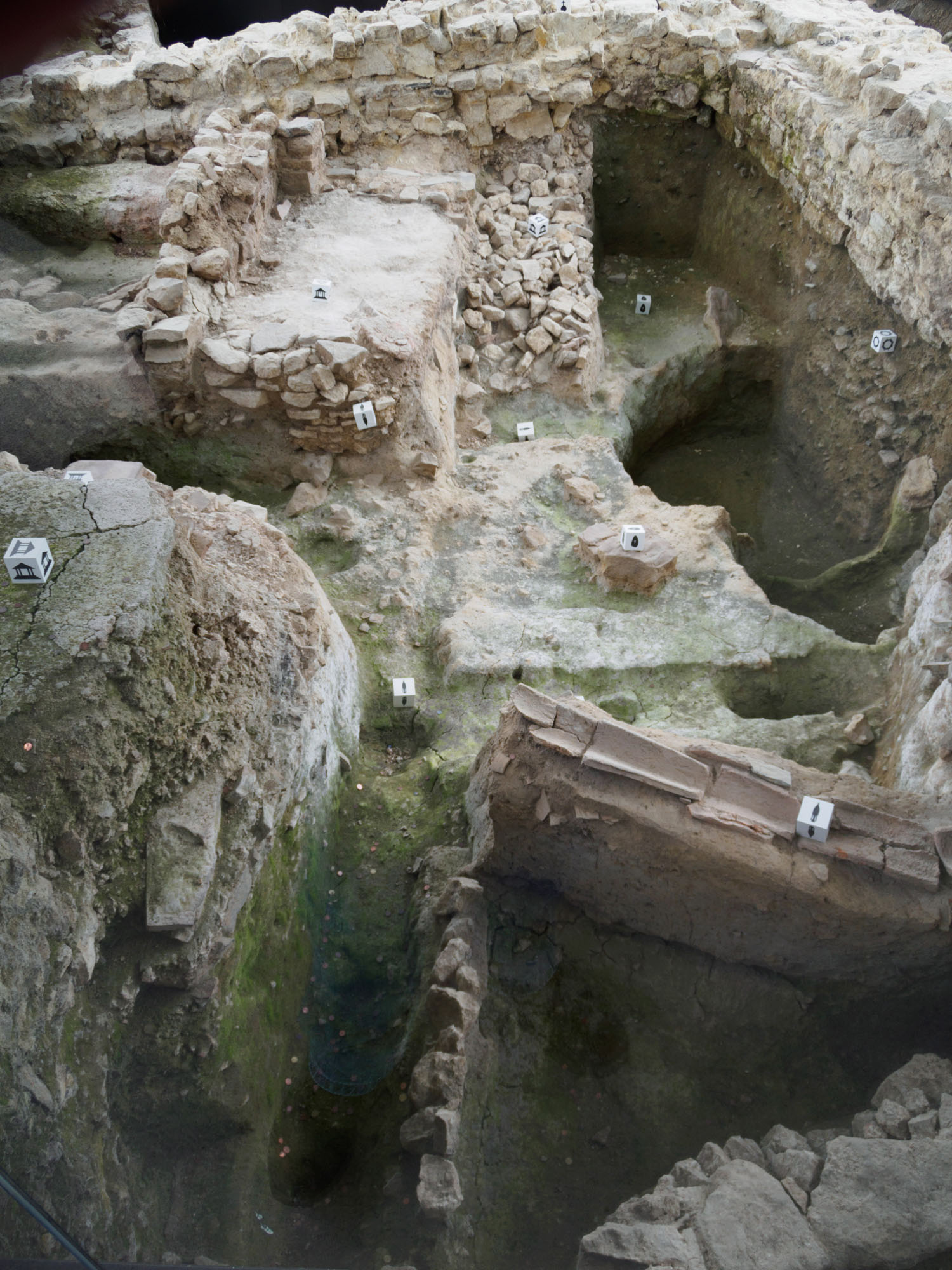 In der ganzen Stadt stoesst man bei Ausgrabungen auf archaeologische Funde. Hinter dem Brunnen konnten wir archaeologische Mauerreste besichtigen.
