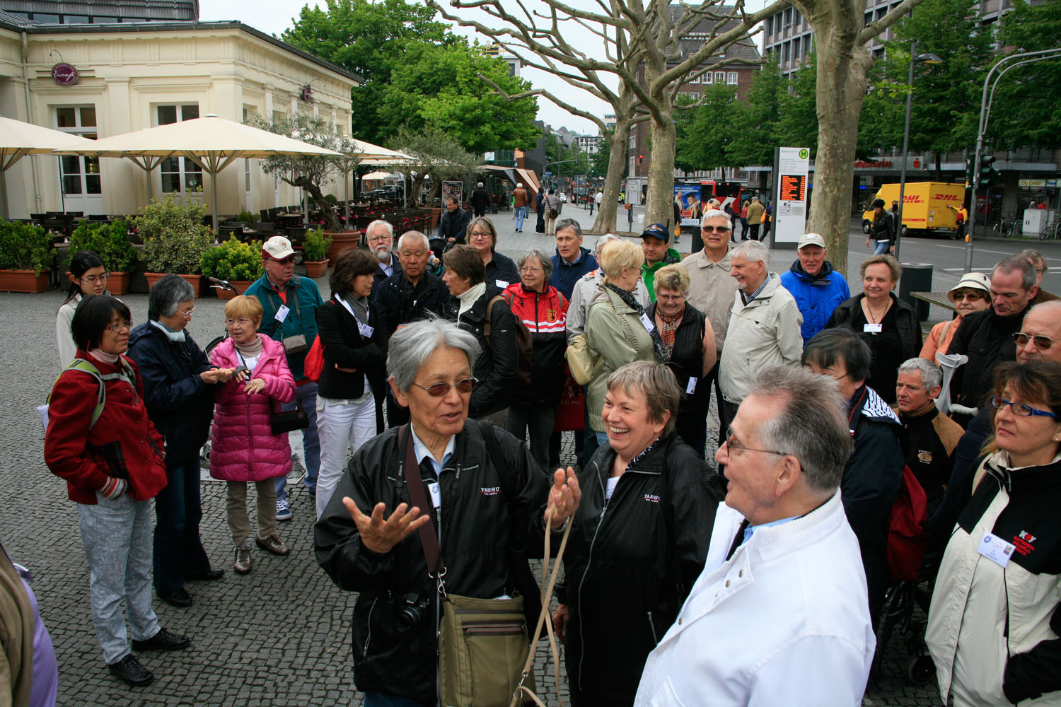 Es heisst ja oft: „grosse Ereignisse werfen ihre Schatten voraus“. So aehnlich empfanden wir es diesmal. Naemlich, bereits zu Jahresbeginn, teilt uns Takeshi, JA6EV mit, dass er sich mit Frau und Enkeltochter zum Treffen in Aachen angemeldet habe. Aachen war ihm gut bekannt, das wussten wir, da er bei seinen frueheren Besuchen hier in Marburg viel ueber seine Gast-Professur dort erzaehlt hatte. Er wollte also im Mai nach Frankfurt fliegen, dort besonders seiner Enkelin die Stadt zeigen und auch einen Abstecher nach Marburg unternehmen. Gut vorbereitet klappte alles nach Plan, er kam mit dem Zug zu uns und wir konnten schoene, gemeinsame Stunden verbringen. Zwei Tage spaeter trafen wir uns dann in Aachen wieder, wo Takeshi inzwischen bereits Kontakt zu seiner damaligen Wirkungsstaette aufgenommen hatte.