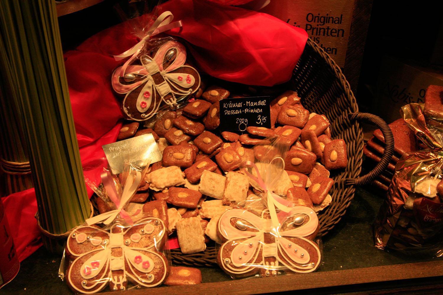 Ein Aachener Apotheker hat als erster die Herstellungsmethode der Tafelschokolade erfunden. Weltbekannt sind auch die Aachener Printen. Vor Ort konnten wir uns von der Qualitaet ueberzeugen. Eine kostenlose Probe animierte uns dann zum Kauf einer Packung als Souvenir und Mitbringsel.