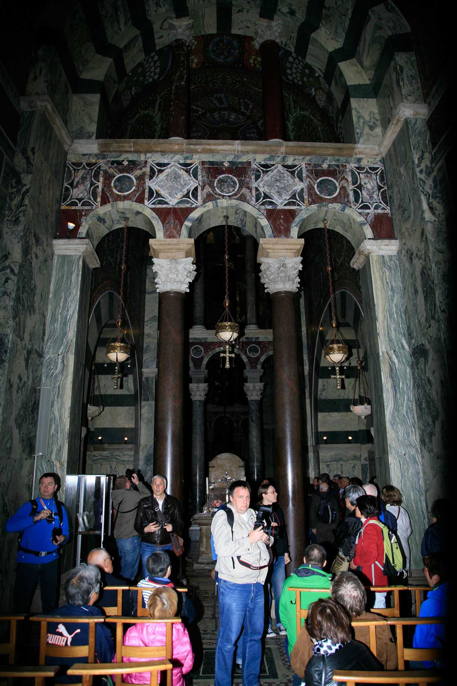 Nachmittags ging unser Sightseeing zu Dom-Schatzkammer. Wir haben das Lotharkreuz, die Karlsbueste, das Armreliquiar von Karl dem Grossen und seinen Proserpina-Sarkophag gesehen.