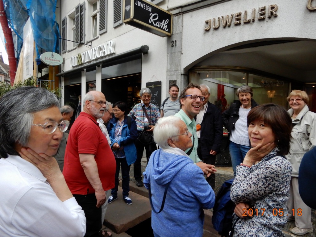 Einige Freunde nutzten die Gelegen­heit, mit dem Bus in das nahe gelegene Freiburg zu fahren und auf eigene Faust schon einmal ein wenig zu „schnup­pern“. Die Stadtfuehrung durch Freiburg war fuer Nachmittag angesetzt. Die Freunde hoerten den Ausfuehrungen unseres sehr kompetenten Guide auf­merksam zu und erfuhren so einiges ueber die „Baechlestadt“.