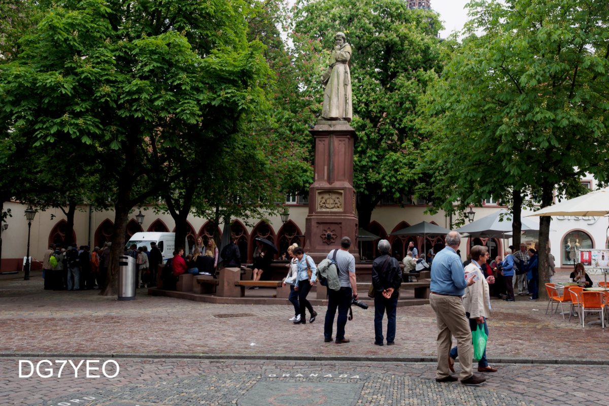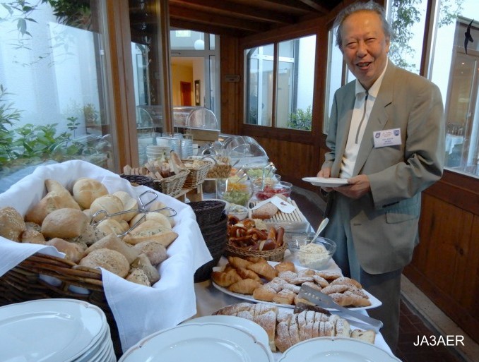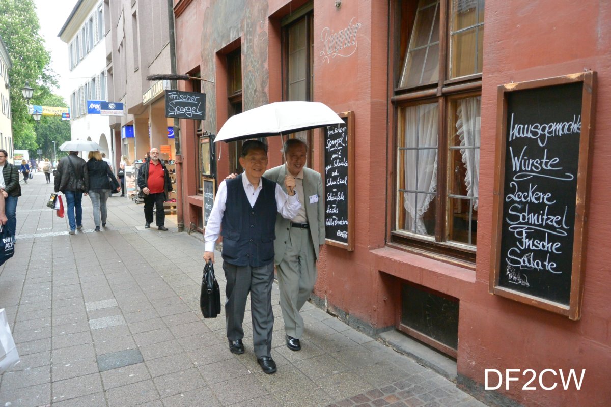 Aus Osaka habe ich mit OM Nishi (JK3IYB) am „33. JAIG Treffen“ Treffen in Freiburg, das ab 18. Mai vier Tage lang stattfand, teilgenom­men. Am Vortag, den 17. Mai sind wir vom Kansai-Airport gestartet. In Frankfurt ange­kommen, nahmen wir einen Zug bis Freiburg. Weil ich seit 20 Jahren nicht mehr in Deutsch­land war, war ich unsicher. Als ich am Bahn­hof in Freiburg Nagakura san (DJ0ER) gese­hen hatte, beruhigte ich mich sehr. In Hotel wurden wir von Iki san und Erika san nett empfangen. Dort habe ich Guenter (DK9KG) und andere Teilnehmer, die frueh angekom­men waren, herzlich begruesst und uns vor­gestellt.