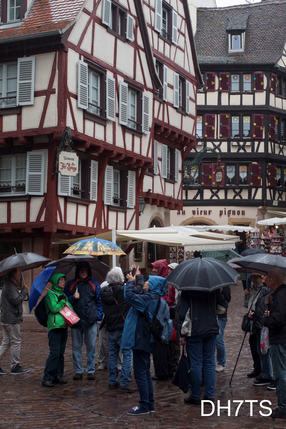 news131 18Also ging es weiter nach Colmar. Auch dort eine aehnliche Situation, leider mussten wir auch hier die Kapuzen und Regenschirme benuetzen. Colmar ist eine sehr huebsche Stadt, aber man muss sehr gut aufpassen, um sich nicht zu ver­laufen. Die Strassen mit den Fachwerkhaeusern aehneln sich sehr und man braucht einen guten Orientierungs­sinn!