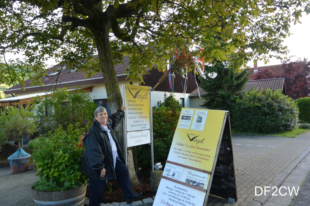 Wir fuhren zurueck, nicht ohne eine Abendpause am Kaiserstuhl einzulegen. Als wir den kurzen Weg bergauf in die Strausse gingen, kam die Sonne durch und schenkte noch eine schoene Abendstim­­mung. In der Vogel-Strausse war alles fuer uns vorbereitet, die Essenwuensche hatten wir telefonisch vorher durchgegeben und so funktionierte es reibungslos. In kurzer Zeit hatten wir alle unser gewuenschtes Essen und alle waren voller Lob. Der Flammkuchen dort schmeckte aber auch wirklich vorzueglich!