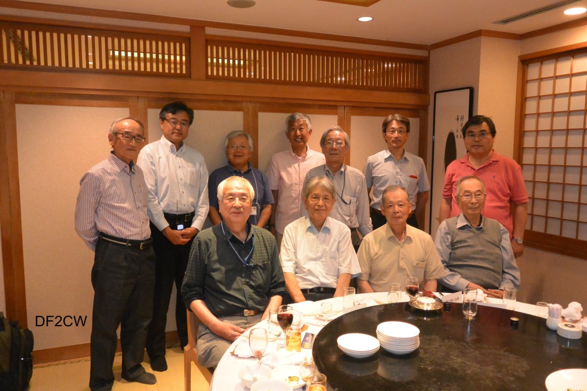 (stehend): Tanabe san (# 557 JA1OGX), Yamauchi san (# 591 7K1BIB), Sugimoto san (# 035 JG1GWL), Kawabe san (JF1TEU), Senda san (# 151 JA1MYW), Ohori san (# 086 JR0DLU), Okano san (# 590 JF1CXH),