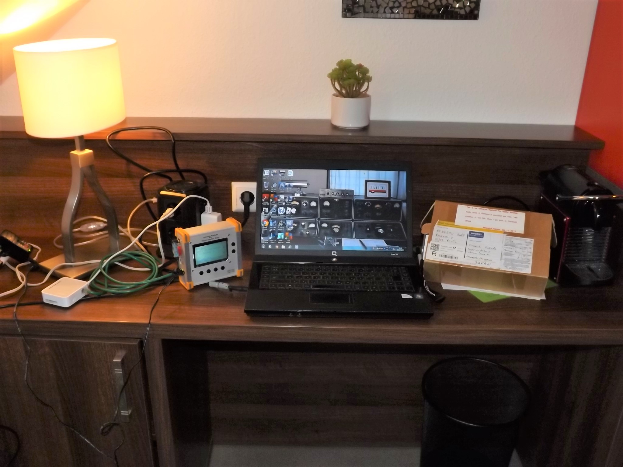 Meine Einrichtung ist sehr einfach: nur Net-Book und DV-Stick 30. Mic und Sp sind im Net-Book eingebaut. Daneben steht ein Mini Bierkrug, aber keine Alkoholmodulation!