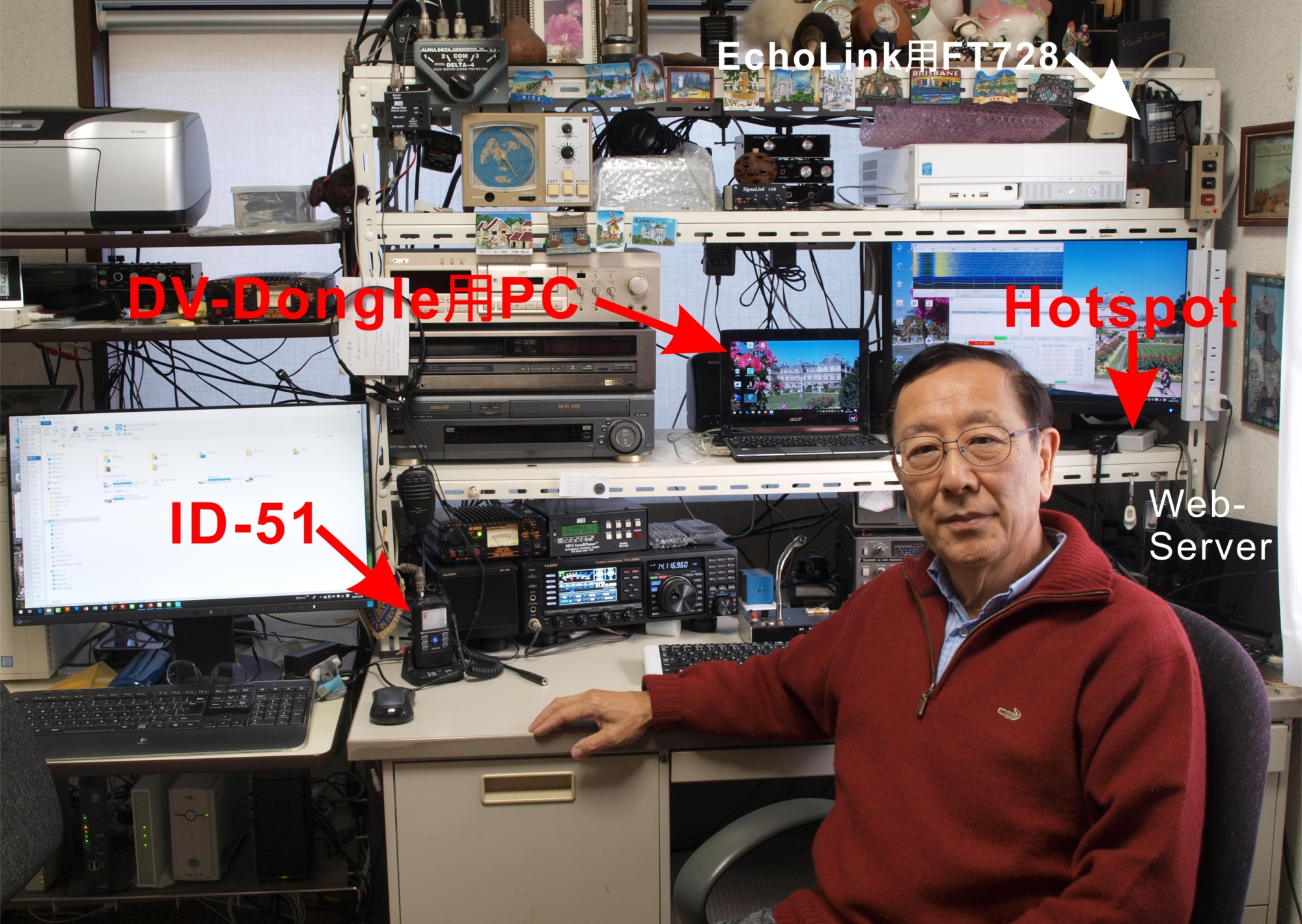 Ich interessierte mich fuer D-Star und hatte zuvor ID-80 (ICOM-Handy) zugelegt, stellte jedoch fest, dass die Verbindung mit dem Ausland schwierig war. Aber habe ich gelernt, dass es mit der Reflector Methode einfach zu realisieren ist. Auf Grund des schlechten Zustandes des HF-Bedingungen beteilige ich mich haeufig am D-Star QSO. Ich habe noch ein anderes System mit ID-80 und BlueDV.