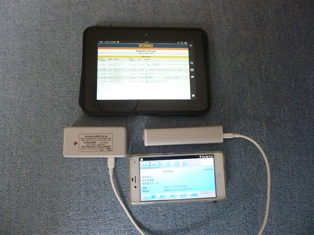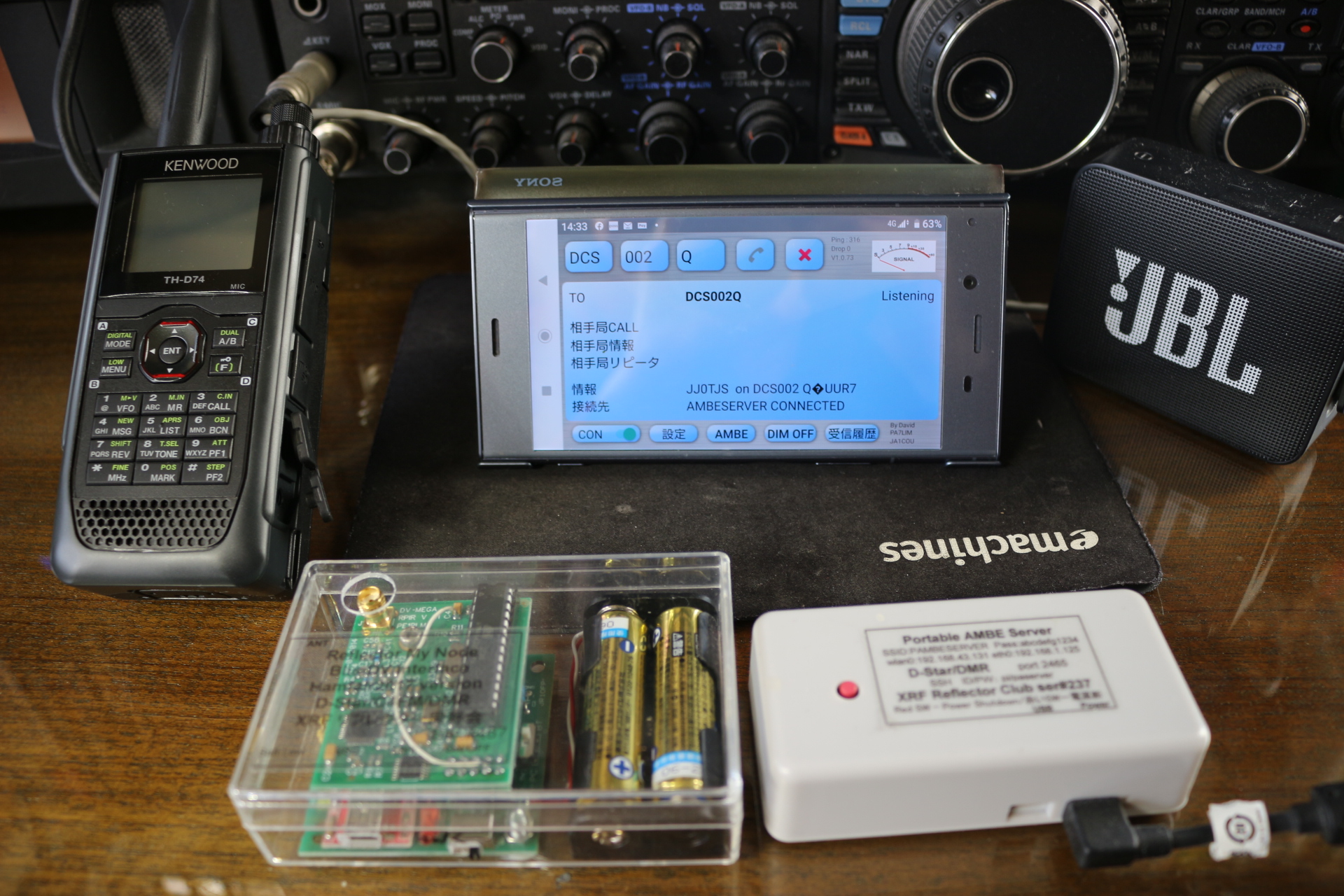 写真左にはBlueDV Interface リフレクターマイノードとトランシーバーTH-D74との組み合わせもありますがほとんど使っていません。アマチュア無線家らしくトランシーバーを使ってと思いライセンスだけは取りました。これは海外に行ったときライセンスが必要となるのであまり便利でありません。AMBER Serverを家のルーターに繋いでおけばスマホだけでどこでもできますから重宝しています。