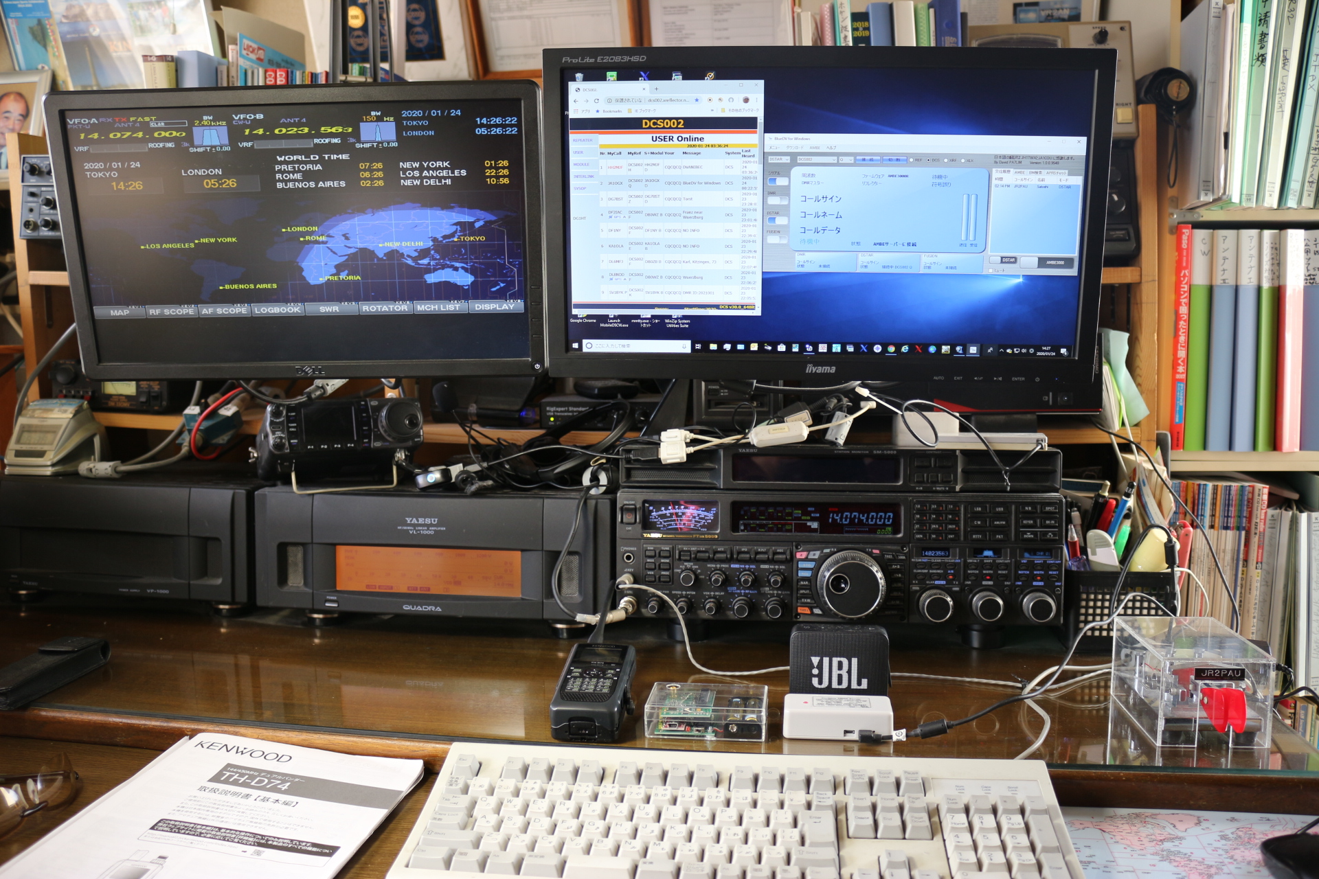 私がD-Starを運用しているのはノ-トブックPCとDVStick30です。鶴見さんに御世話になりセットアップでき、2年程前にJAへ行った時参加したのが唯一でした。当地カリフォルニヤからの参加はネットの時間に無理があり、今後もJAへ行った時に参加となると思います。左の写真は私のシャックの写真です。