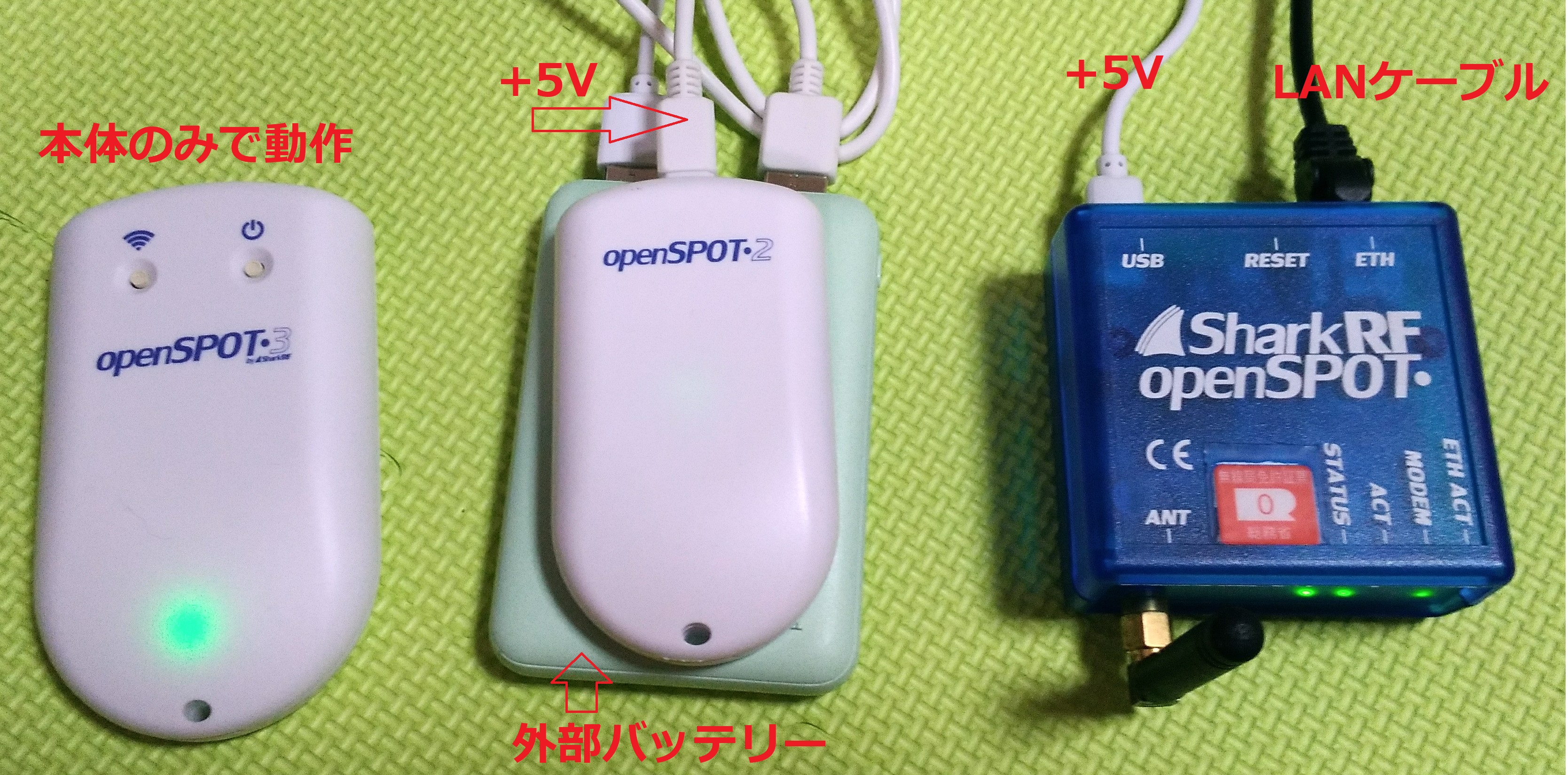 | Von li. nach re. Openspot3, Openspot2, und Openspot (1. Generation) 左から、”Openspot3”、”Openspot2”、”Openspot”。 通信に必要なソフトは本体に内蔵しています。 |
