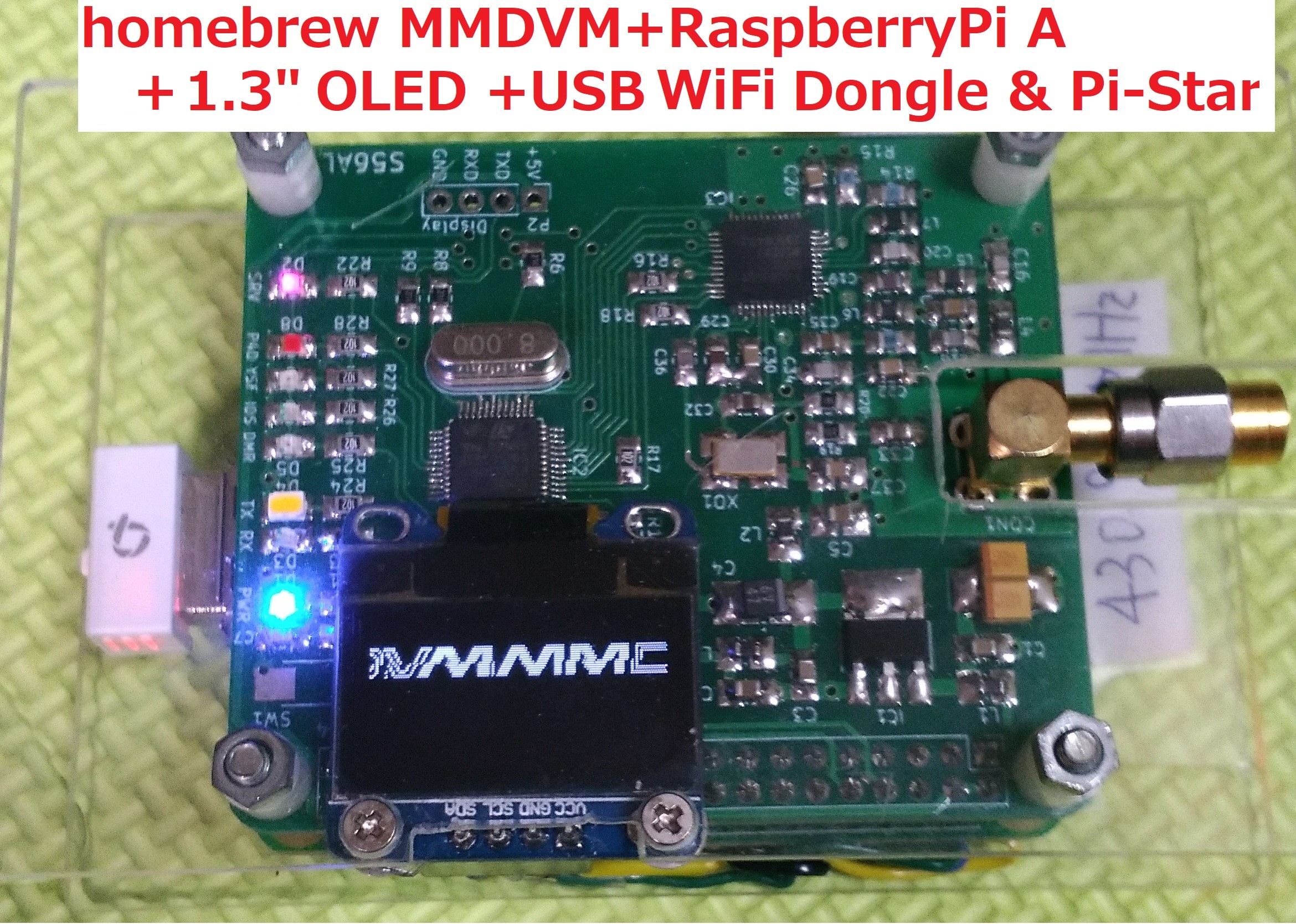 自作MMDVM基板+RaspberryPi A+1.3”OLED+USB WiFi Dongle |