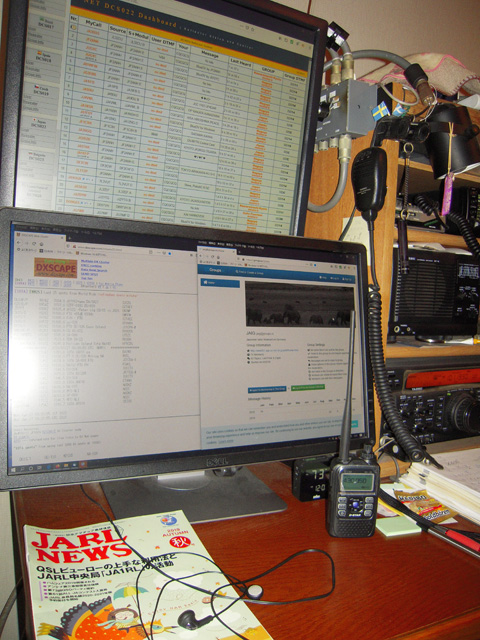 これは電波を出さないことから、JAでの電波法上の問題がないとのことです。従って、無線局のライセンスがあればどなたでもすぐにD-Star ネットにQRVすることが出来ます。写真にありますようにレシーバーを使っていますので別のPCで書き物をしながらQSOをしています。将来はこれが主流になるかもしれません。