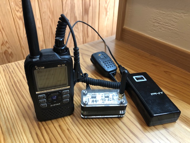 この写真にあるセットはD-Starモビールセットです。HotSpotはDV MEGA+RaspberryPi、 TP-LINK社のモビールルータ―を介してID-31からQSOをしています。